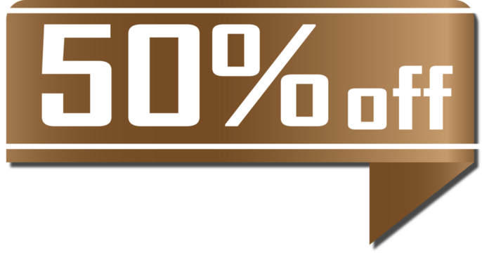 Brown sale banner displaying fifty percent off promotional offer graphic