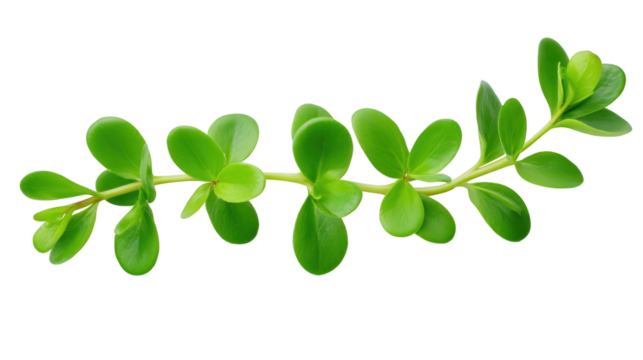 Minimalist green leafy branch on transparent background