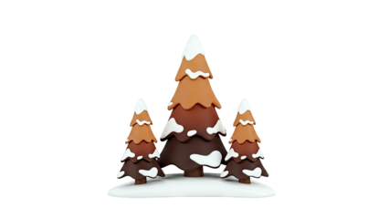 Three cartoon pine trees with snow on white background