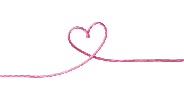 Pink thread forming heart shape PNG. Minimalist love symbol made of yarn string. Creative romantic valentine day design element isolated