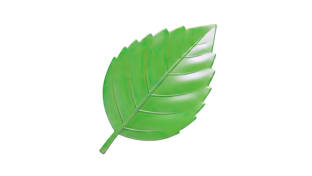 Green leaf with serrated edges on a white background
