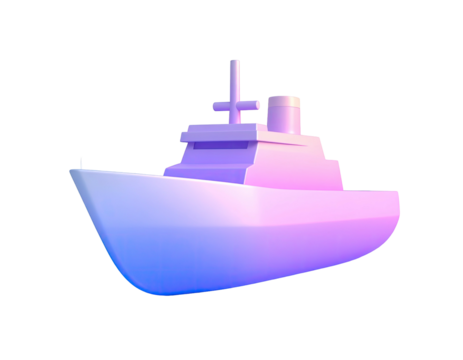 3D rendered ship, stylized with a gradient, isolated on a black background