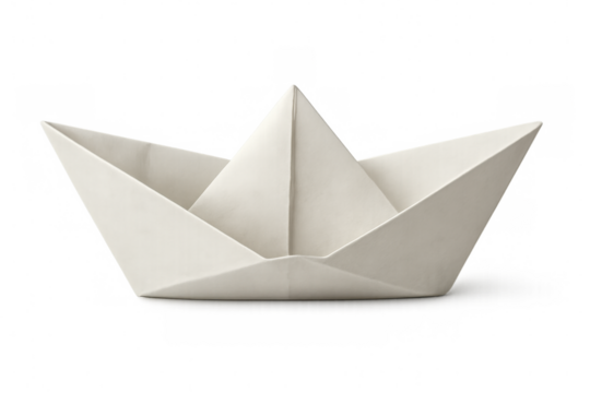 Paper boat created using traditional origami technique, a simple handmade sailboat shape on a transparent background