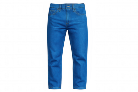 Blue jeans displayed against transparent backdrop, showcasing contemporary denim design with clean, minimalist aesthetic