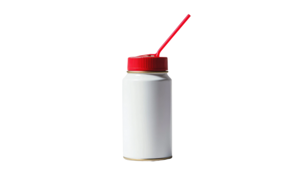 Clean white aerosol spray bottle with silver cap isolated on transparent background