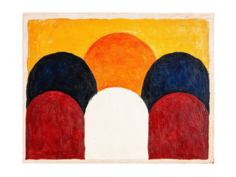 Minimalistic abstract wall painting with colorful arch motifs for modern interiors