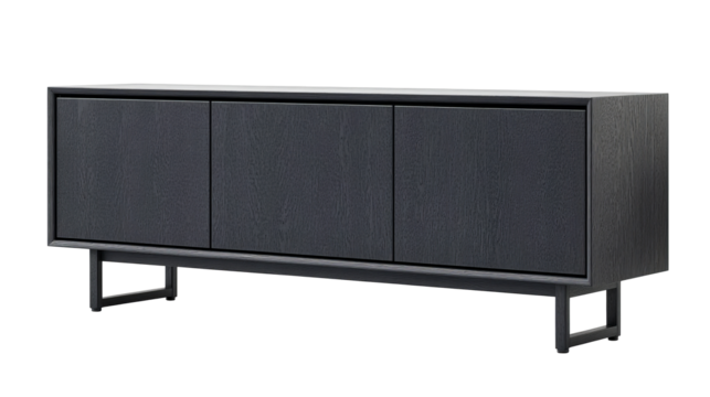 Modern sideboard with dark wood, elegant, three doors, cutout transparent