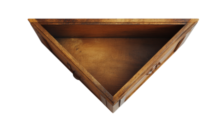 Birds-eye view of a vintage corner cabinet, triangular shape, isolated on a Transparent background, PNG file.
