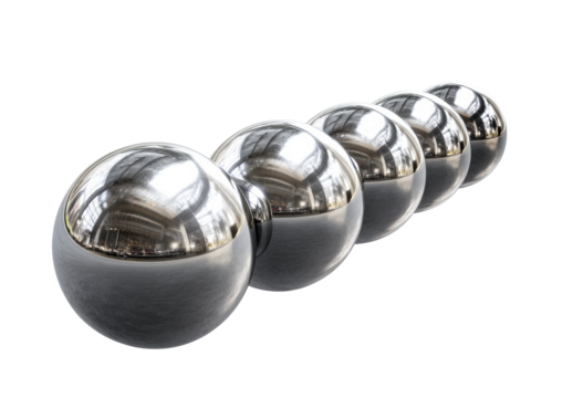Modern decorative spheres arranged in a row for elegant display on a transparent background, cut out
