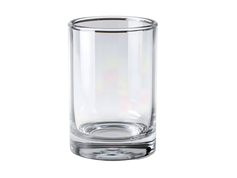 Plain mixing glass with thick walls, smooth lip and weighted base, clear finish with minimized reflections, isolated on transparent background.