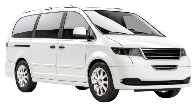 Sleek silver minivan PNG isolated on transparent background, modern family vehicle for transportation and automotive design projects