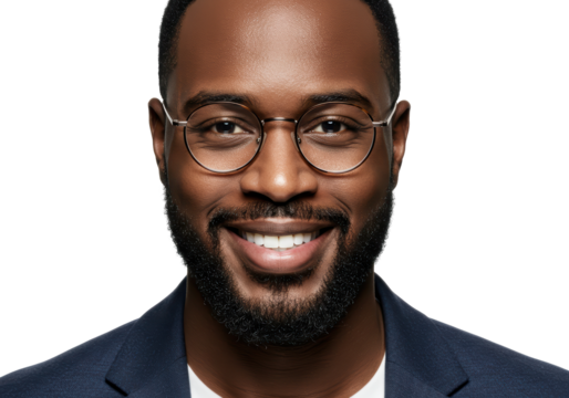 Isolated Close-Up Portrait of a Smiling African American Man with Glasses