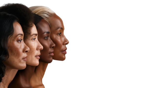 Multicultural diverse women with different nationalities and cultures, side view, isolated on transparent background