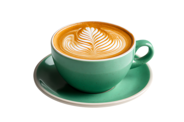 Cafe Latte Art:  Mint Green Cup, Latte Macchiato, Coffee Beverage Photography