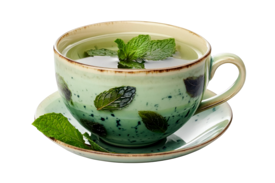 Green Cup of Mint Tea with Fresh Mint Leaves