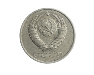 Obverse or heads side of a Nickel 2002 Cuban coin, shows a coat of arms,  name of the country and face value in Spanish reads: "Republic of Cuba, and Ten Centavos" and an eight-sided ring on edge.