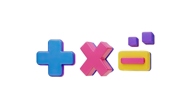3D Math Symbols: Plus, Multiply, Minus