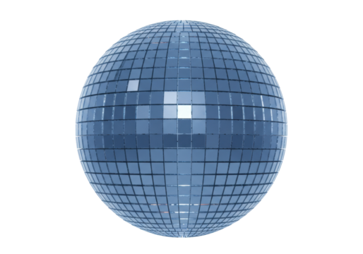 Reflective disco ball sphere with mirror tiles isolated on transparent background