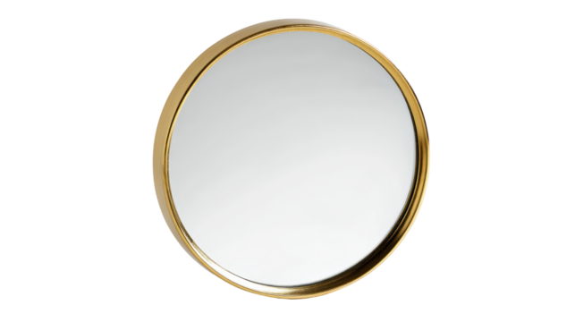 A shiny silver vanity mirror on black on transparent background