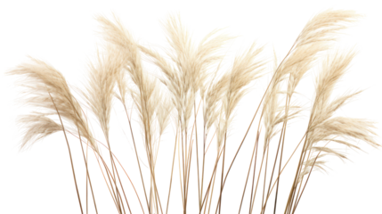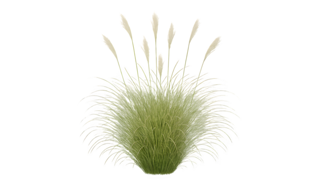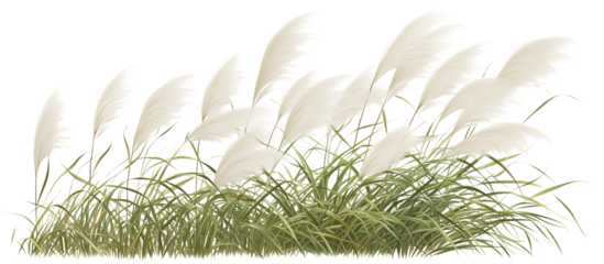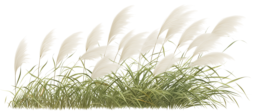 Sweep of miscanthus sinensis grass, showcasing its tall stature and dramatic feathery plumes, perfect for creating visual interest in large gardens, isolated on transparent background -