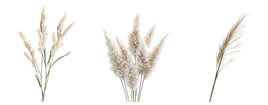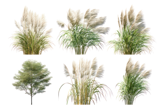 Set of Miscanthus sinensis gracillimus and Pennisetum setaceum rubrum isolated png on a transparent background perfectly cutout high resolution