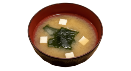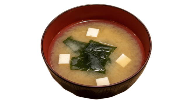 Miso soup with tofu, seaweed, and scallions isolated on transparent background