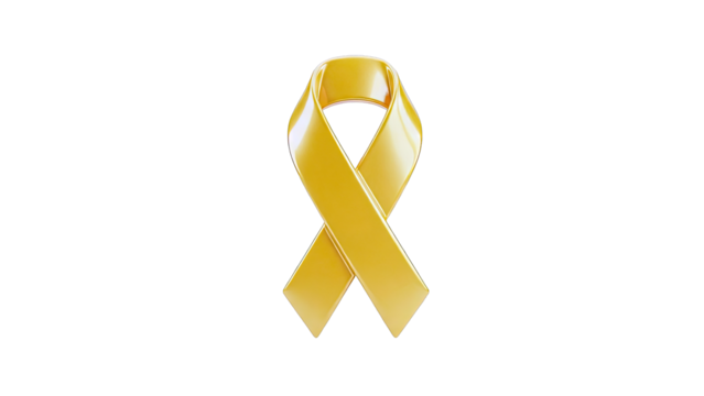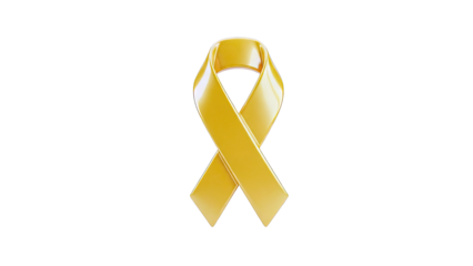 Yellow awareness ribbon symbol for suicide prevention, childhood cancer, or missing children, isolated on transparent background