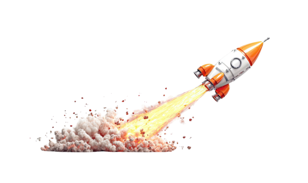 Detailed space rocket PNG isolated on transparent background, futuristic spacecraft for space exploration and science fiction projects