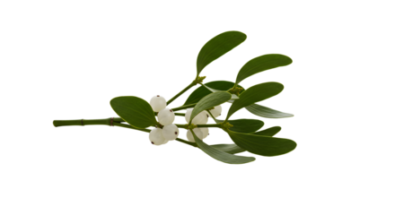 Isolated mistletoe branch with green leaves and white berries for festive winter decor