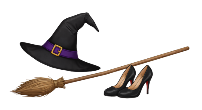 Witch Hat, Shoes, and Broom – Stylish Halloween Magic Combo