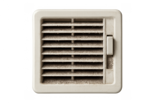 Dust buildup on an old air vent, highlighting the need for cleaning and maintenance of hvac systems for better air quality