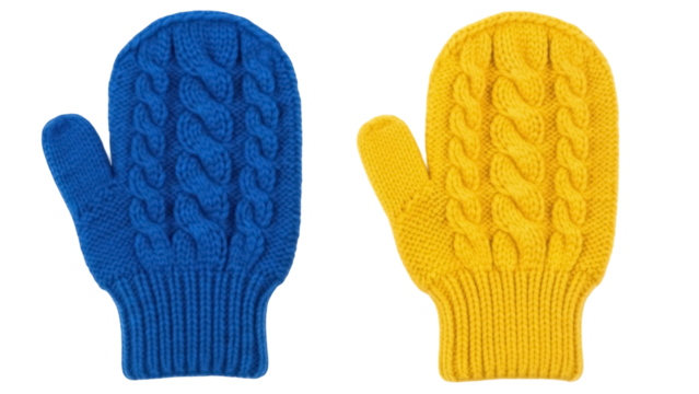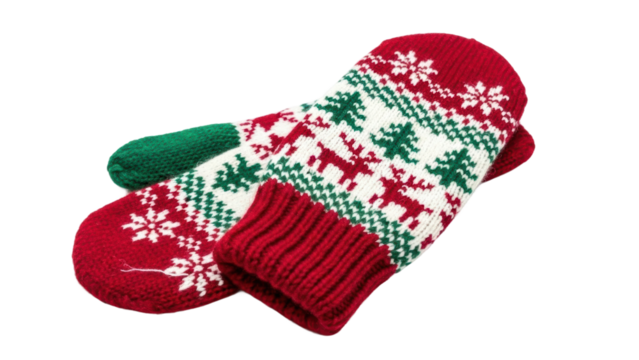 Knitted mittens and gloves set. Children and adults winter accessories. Cute cartoon vector illustration.