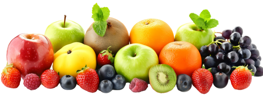 Mixed Berries with Leaf on Transparent Background