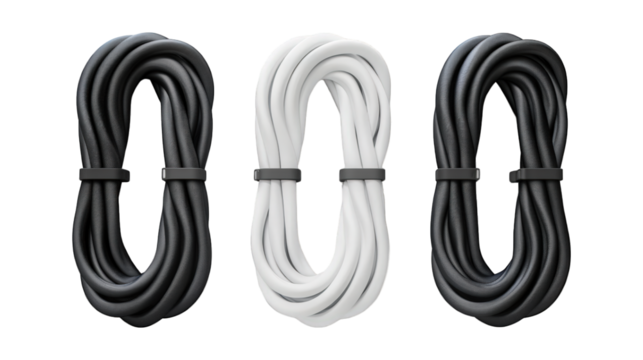 Collection Of Assorted Office Cable Organizers Black White And Grey For Cable Management And Promotions isolated on transparent background. Generative ai