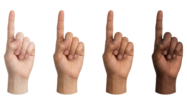 Mixed race rising hands with sign banner with the words "solidarity, unity and equality" over white transparent background