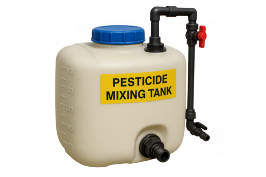 Pesticide mixing tank for agriculture chemicals on transparent background