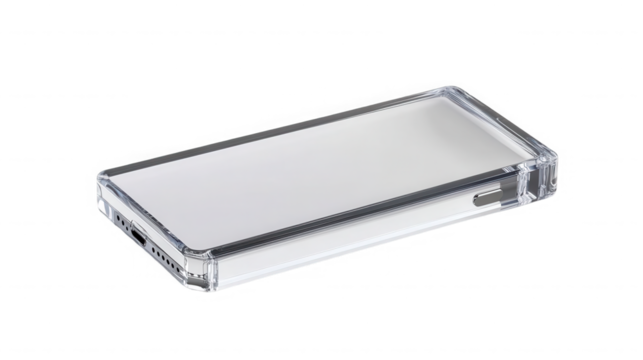 clear plastic phone case designed for protection and style on transparent background