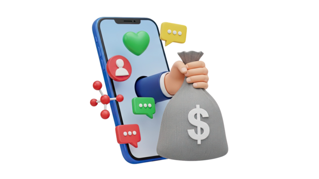 3D Phone with hearts and notification bubbles on transparent background