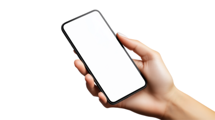 Hand Holding a Smartphone with Blank Screen for Customization isolated on transparent background
