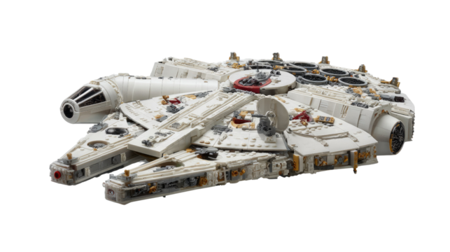 A white, minimalist model of a fishing boat with a cabin and antenna