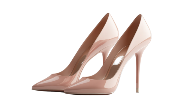 Elegant Peach Heels: A pair of stylish high heels, boasting a glossy peach finish, poised perfectly to represent sophistication and fashion.