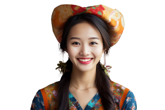 Close-up of young Vietnamese woman smiling with beauty, happiness and youth in studio Isolated on transparent background.