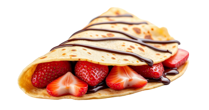 Strawberry and Chocolate Crepe on Transparent Background for Dessert and Snack Menus