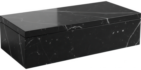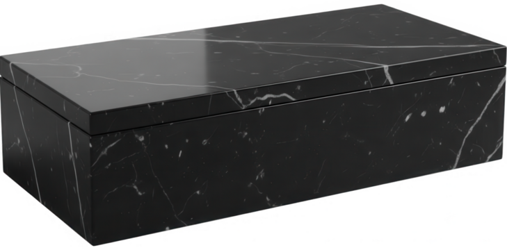 Rectangular black marble box with white veins on transparent background