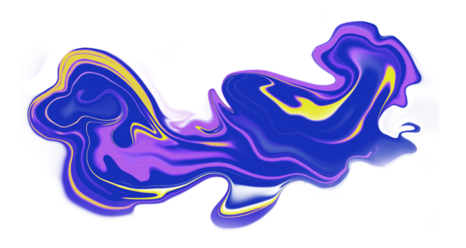 Abstract colorful liquid swirl on white background, flowing fluid paint shapes in purple, blue and yellow, vibrant modern art concept, isolated design