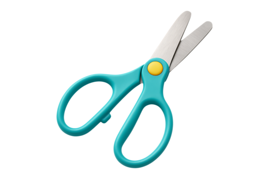 Children Safety Craft Scissors with Rounded Blades Isolated on a Transparent Background