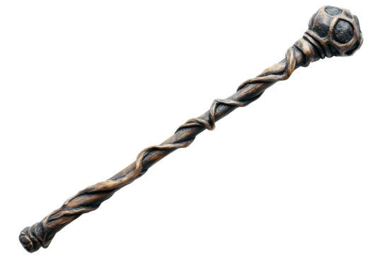 Wooden teaching pointer placed on plain white backdrop isolated on transparent background