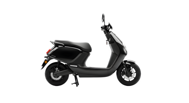 Black electric scooter side view isolated on transparent background