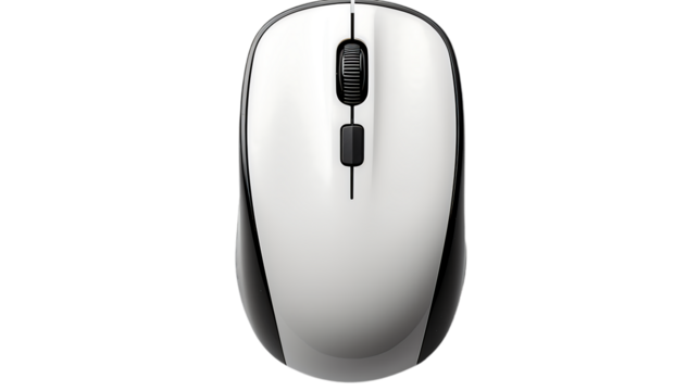 Modern black wireless computer mouse with matte finish isolated with transparent background