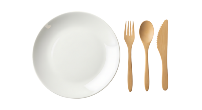 White plate with wooden cutlery set